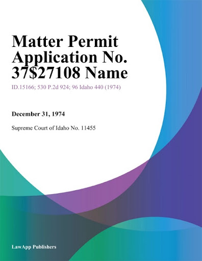 (DOWNLOAD) "Matter Permit Application No. 37-7108 Name" by Supreme Court Of Idaho " Book PDF Kindle ePub Free